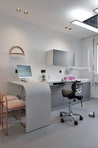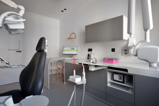 En plein cœur du 6eme arrondissement de Lyon, ce cabinet dentaire de 120m2 a été entièrement repensé offrant l’accès à trois salles de soins distinctes, un bloc opératoire, un bureau privé, un accueil et un espace d’attente, dans un esprit chaleureux et intimiste à l’image d’un lieu d’habitation privé.