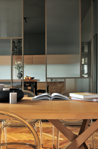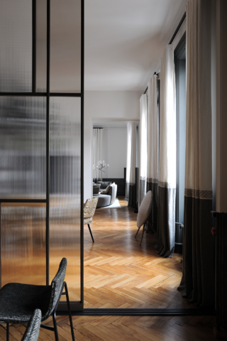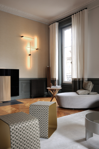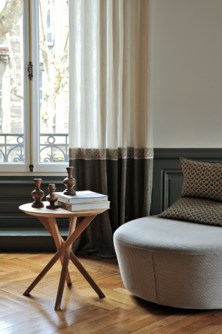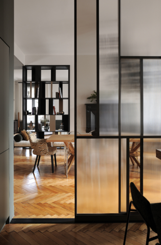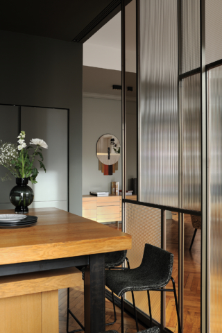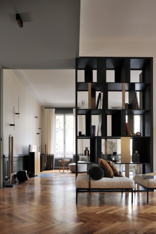 Au coeur du 6eme arrondissement de Lyon, les 90m2 de cet espace de vie ont été repensé, tout en conservant l’âme du lieu. Le travail des revêtements, de l’éclairage et du mobilier harmonise l’espace et crée une réelle identité. La bibliothèque ainsi que les panneaux coulissants ont été imaginé par Candice Bruny, et réalisé sur mesure.