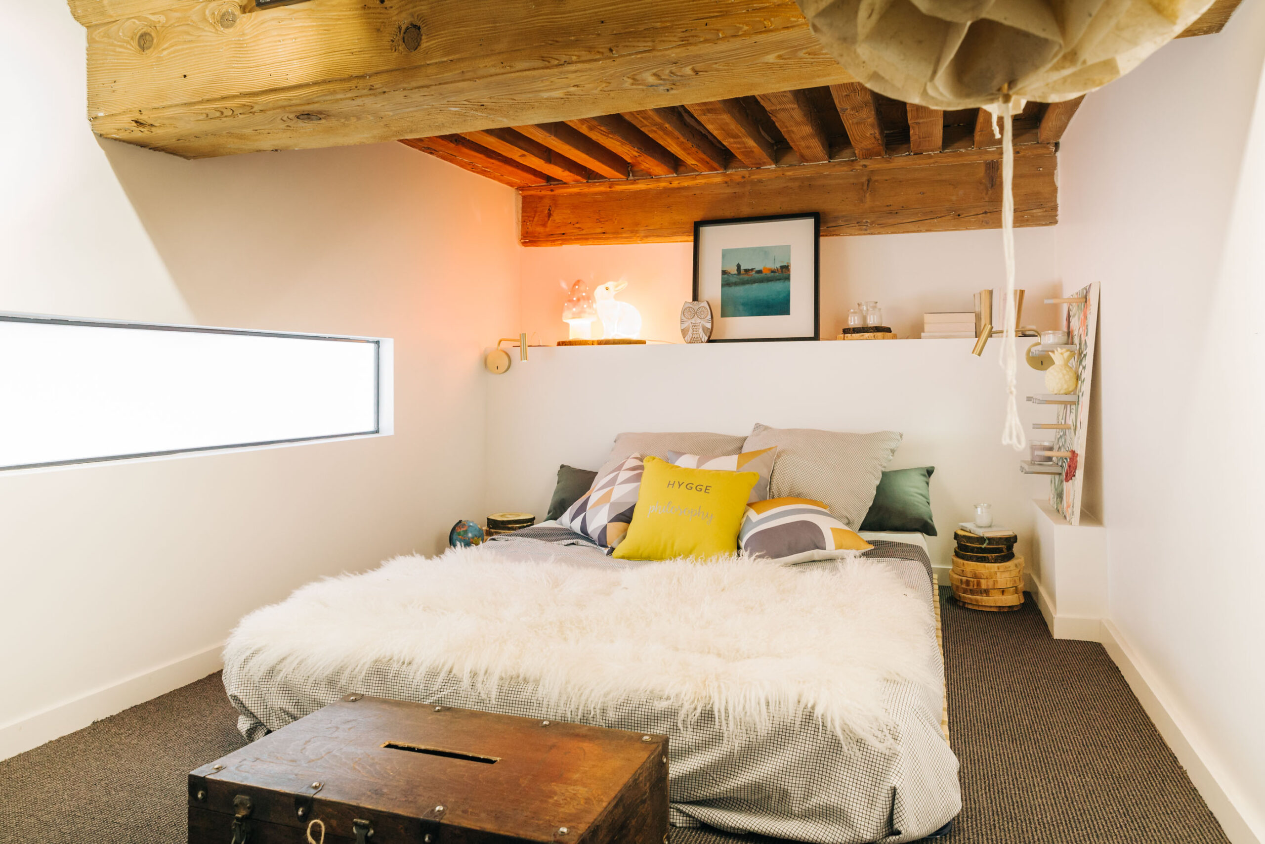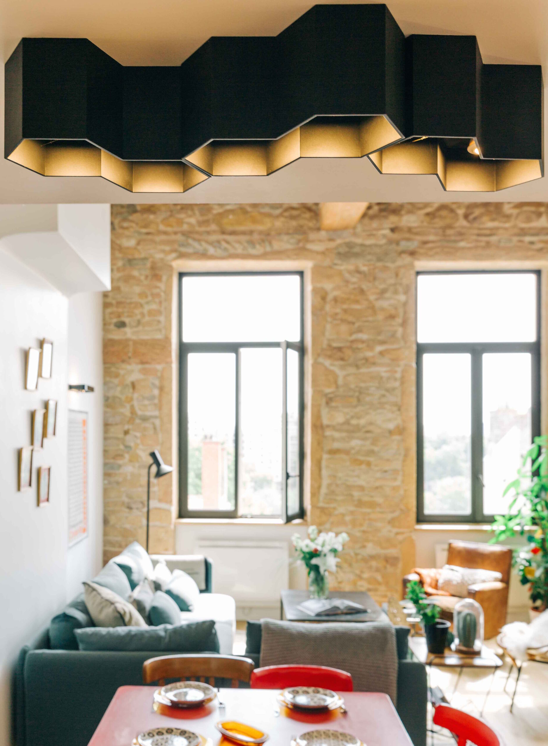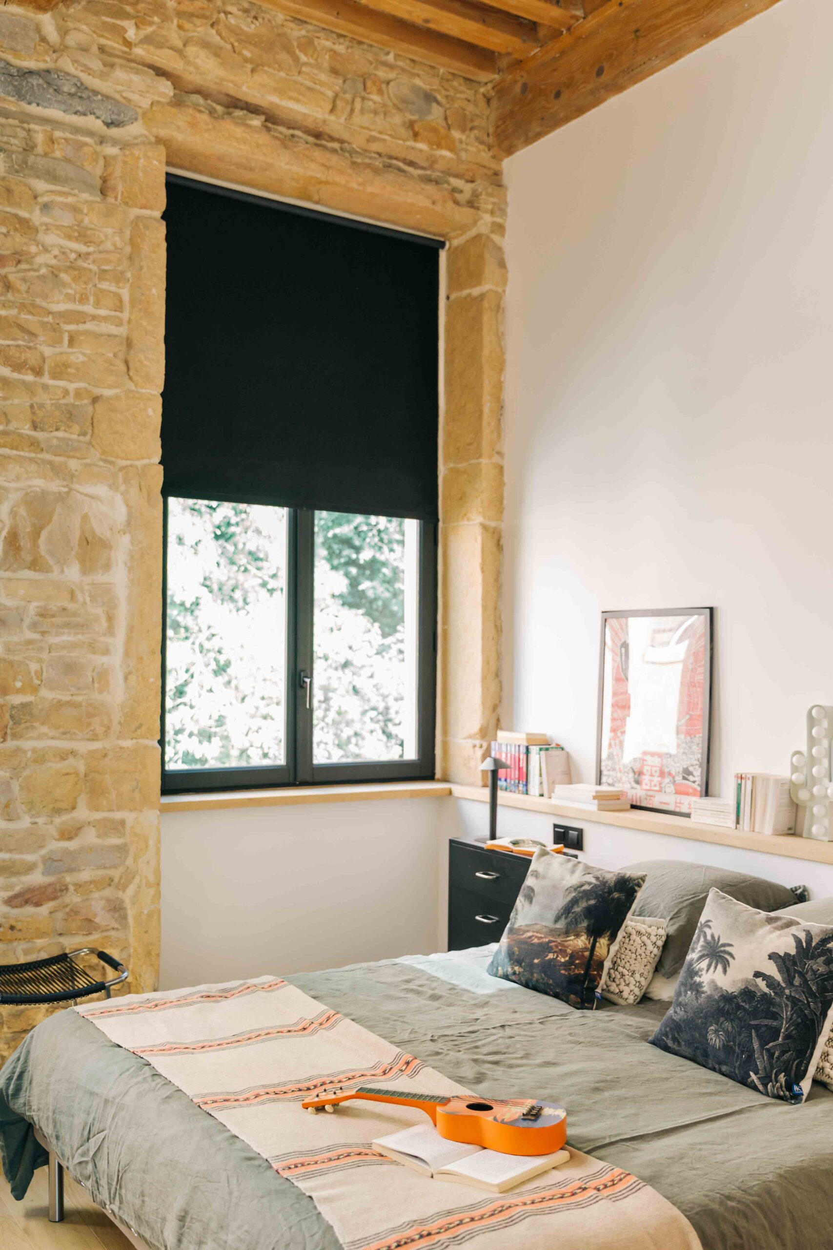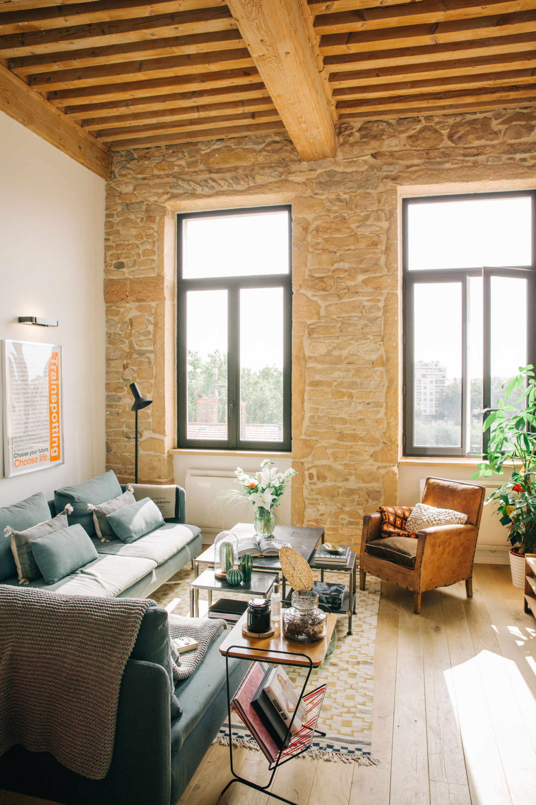 Au pied des pentes de la Croix-Rousse, cet appartement de 80m2 a été entièrement rénové, laissant apparaitre ses poutres d’origines & ses magnifiques pierres murales. Les volumes ont été repensé dans le but de créer de la surface habitable supplémentaire grâce à une mezzanine dissimulée sous la généreuse hauteur sous plafond.