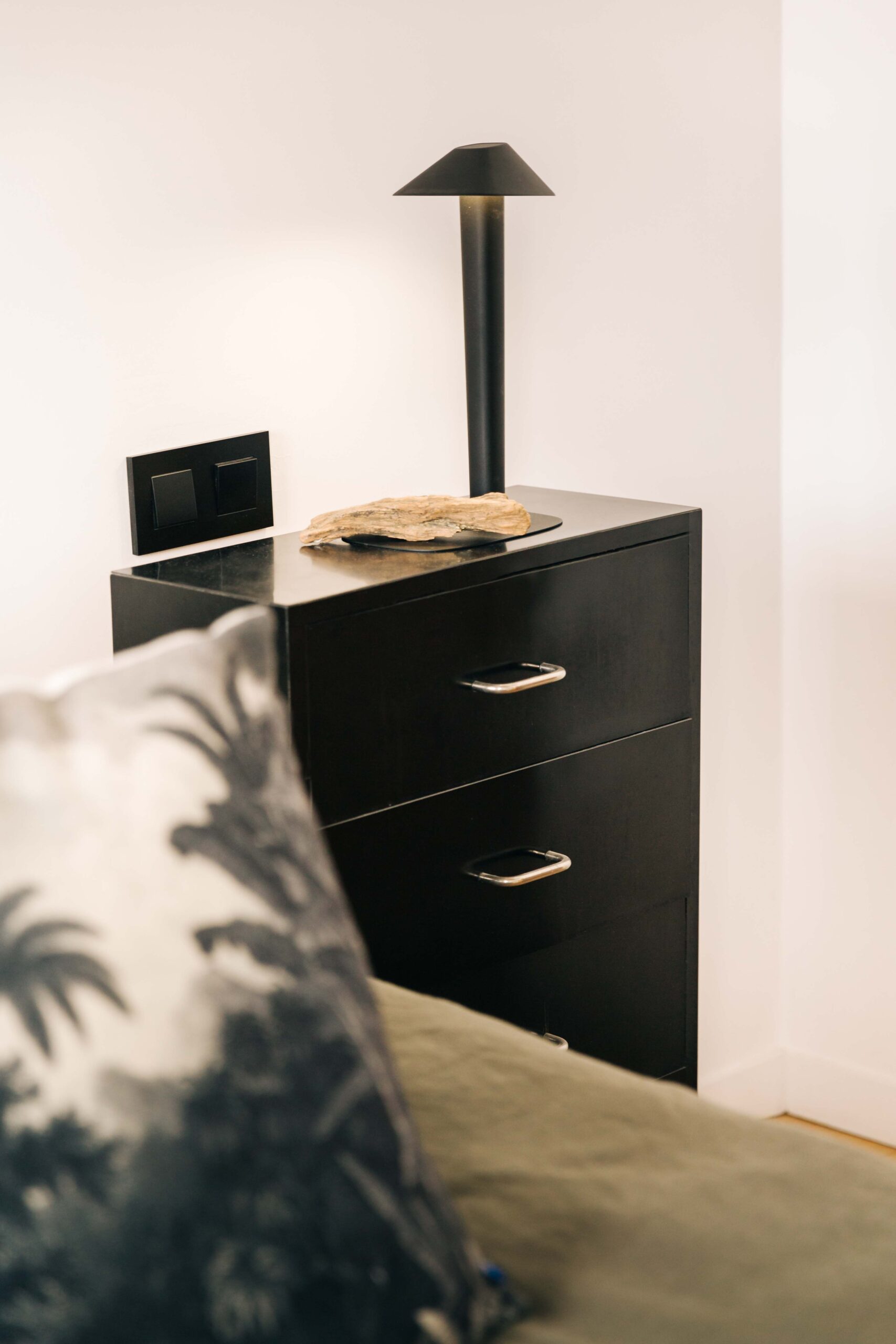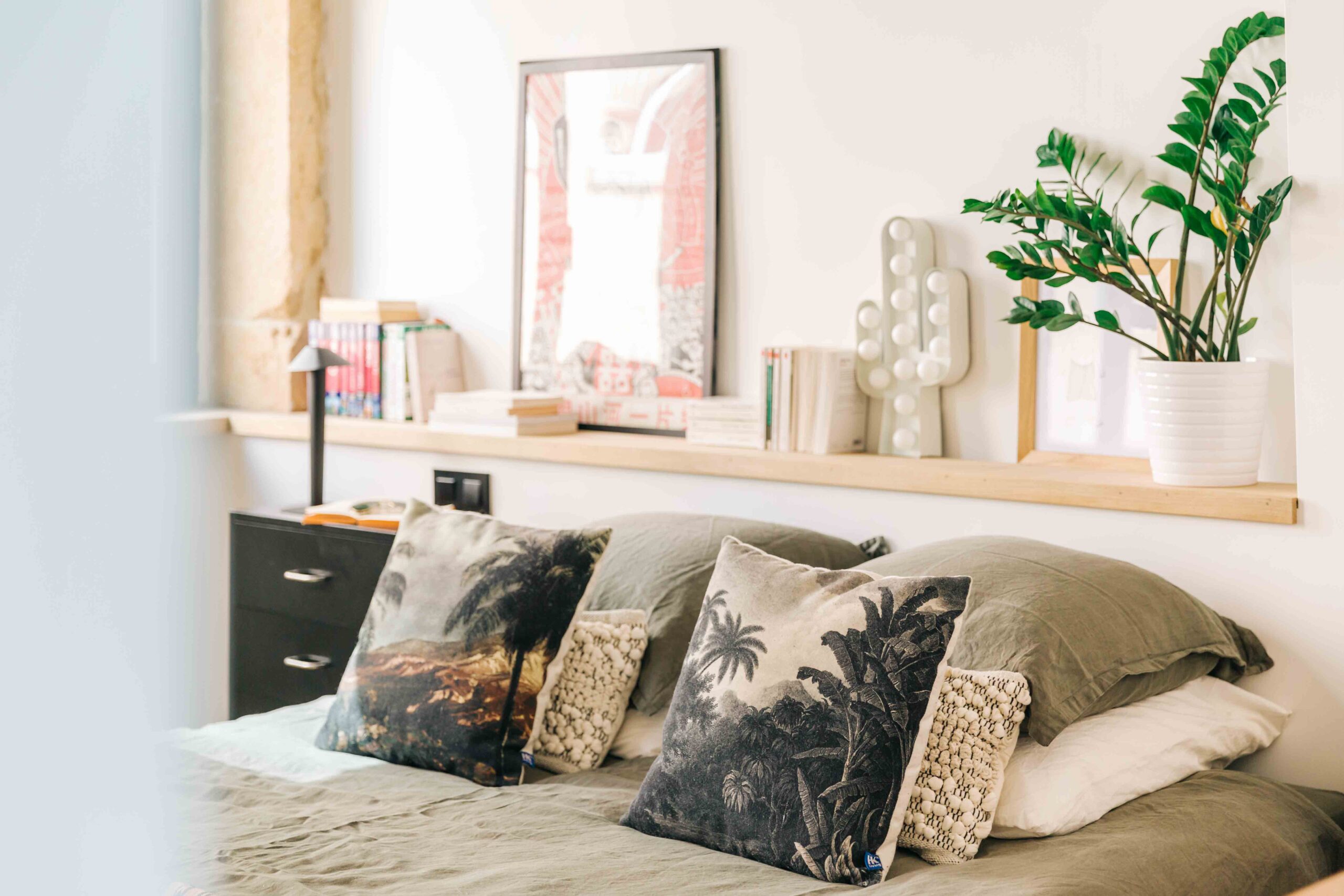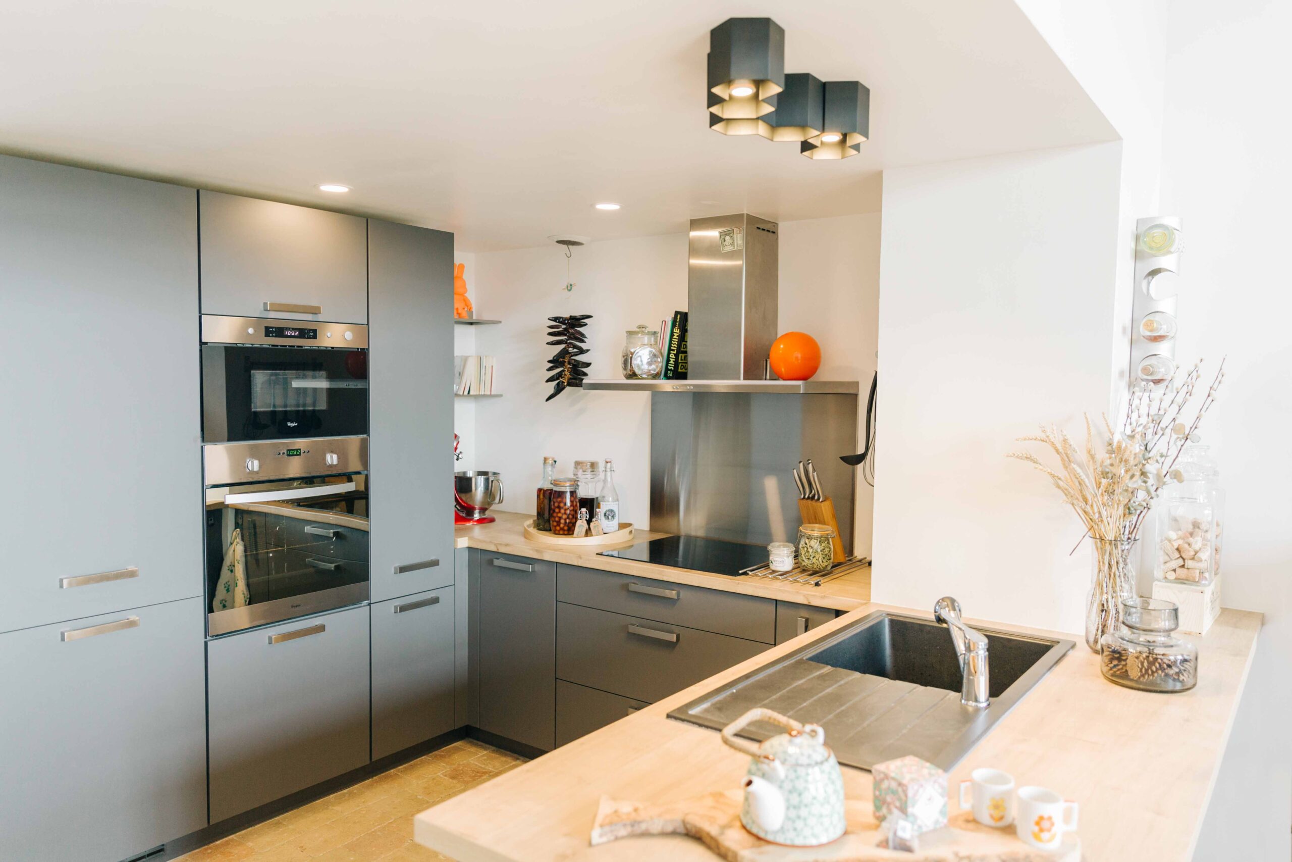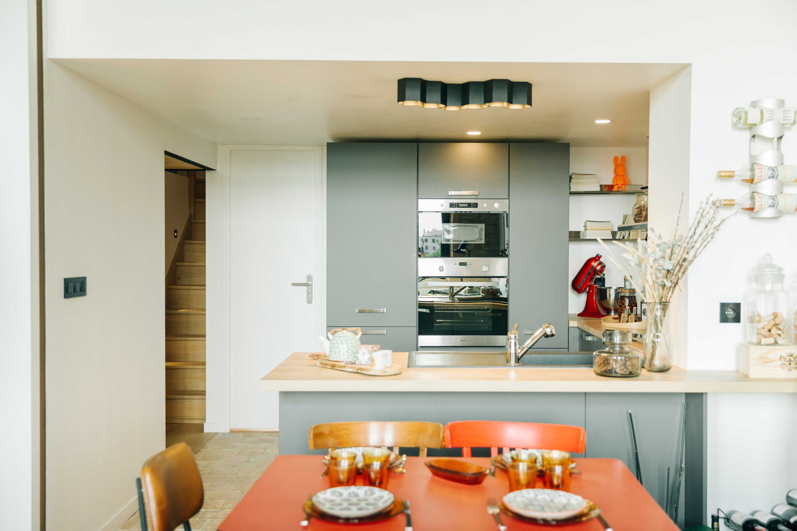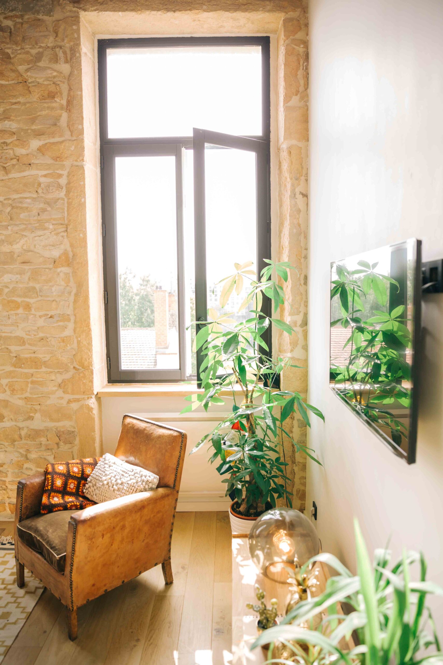 Au pied des pentes de la Croix-Rousse, cet appartement de 80m2 a été entièrement rénové, laissant apparaitre ses poutres d’origines & ses magnifiques pierres murales. Les volumes ont été repensé dans le but de créer de la surface habitable supplémentaire grâce à une mezzanine dissimulée sous la généreuse hauteur sous plafond.